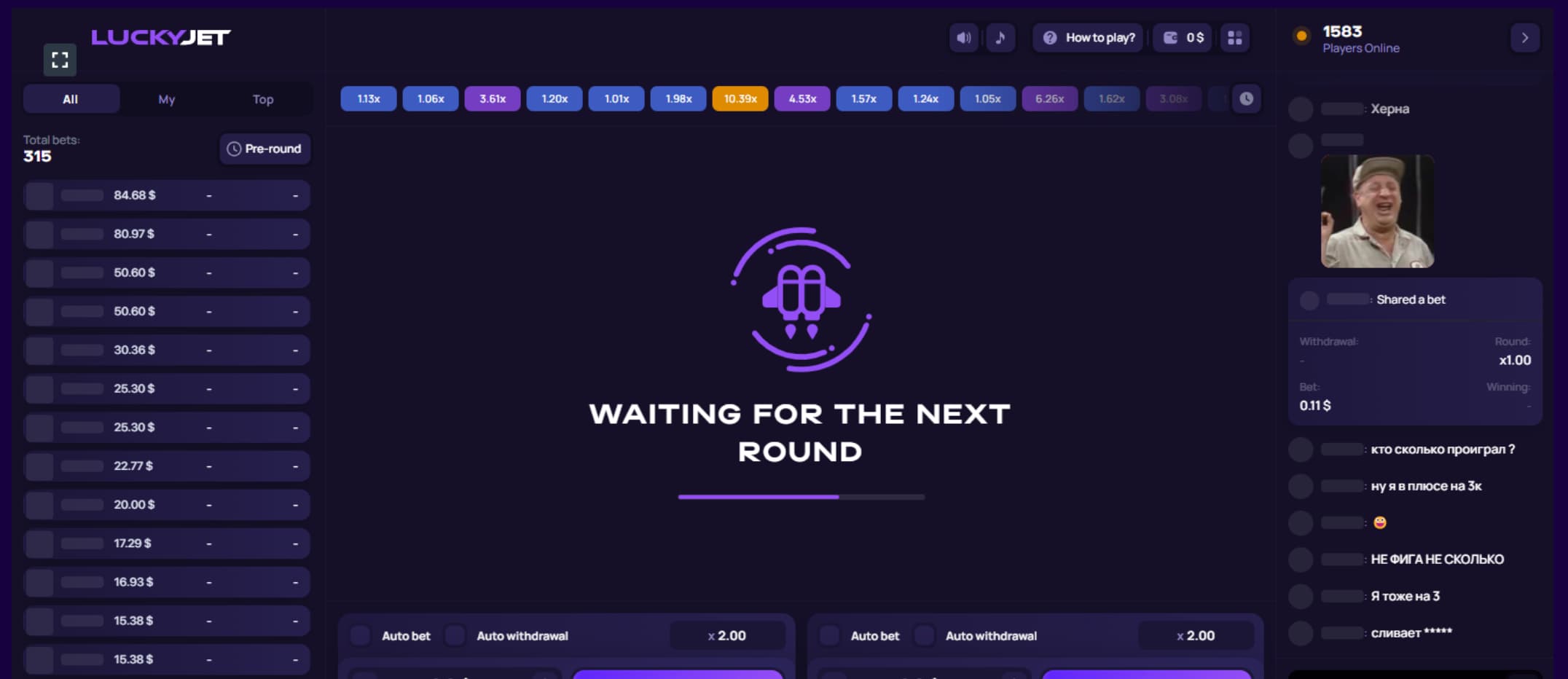 Interfaz de usuario del juego Lucky Jet